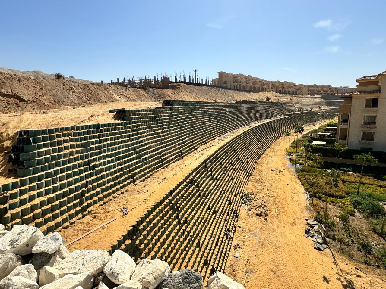 1. Geocells are used in flood drainage channel to guide heavy rainwater safely.